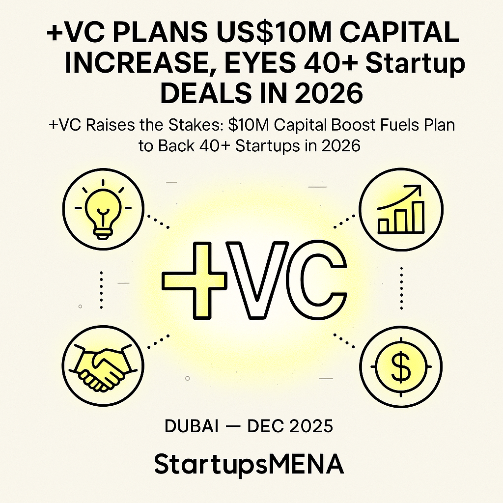Plus VC (+VC), one of the MENA region’s most active early-stage funds with more than 120 portfolio companies, has announced plans to increase its capital by US$10 million. The move signals a renewed push into early-stage dealmaking, with the firm targeting 40 or more new startup investments in 2026.